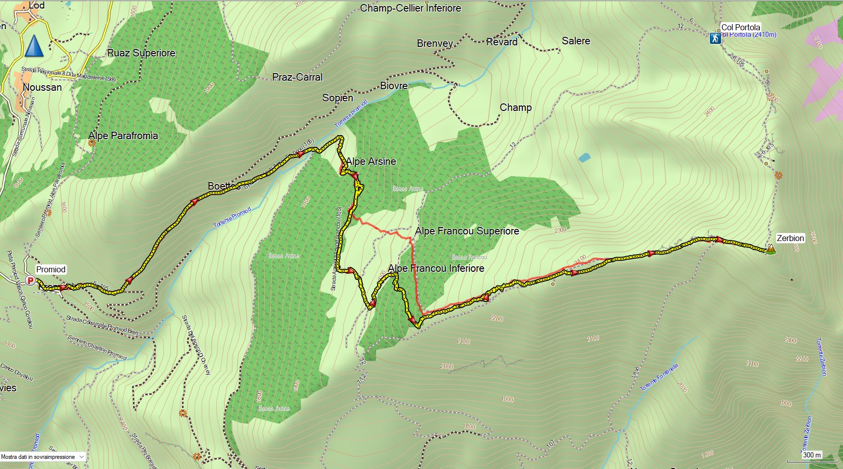 Per il navigatore, se non riconosce Promiod , usare le coordinate satellitari del punto di parcheggio N45° 47.193′ E7° 36.441′