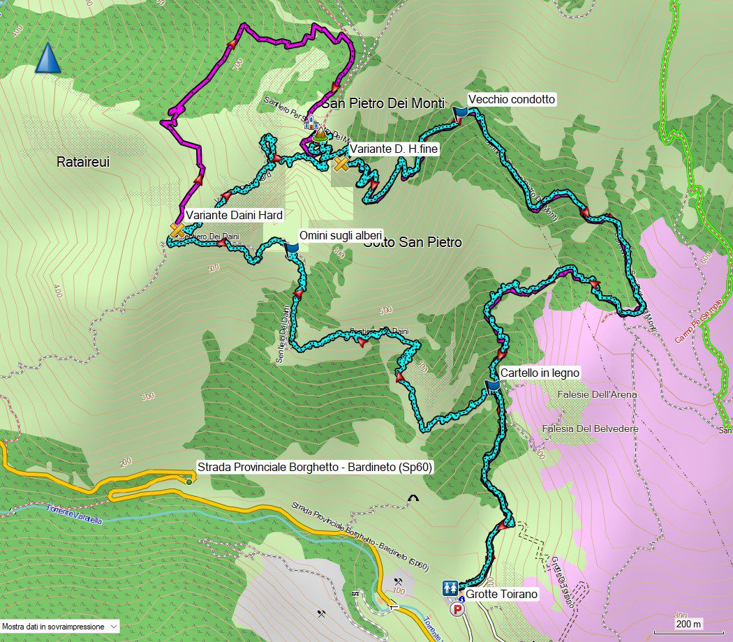 - in ciano il tracciato Wikiloc completo ma ripulito di qualche “stella” ingombrante